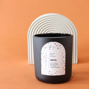 PORTAL Hand Poured Candle. Palo Santo. Eucalyptus. Cypress. Wood Wick. 12 oz. Matte Black.