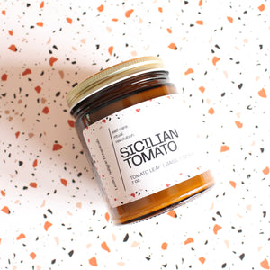 SICILIAN TOMATO Hand Poured Candle. Tomato Leaf. Basil. Star Jasmine. Lemon Zest. 7 oz. Wood Wick. Cotton Wick.