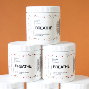 BREATHE Hand and Body Lotion. Lavender + Ylang Ylang. Grape Seed Oil. Silk Amino Acids. Shea. Aloe.