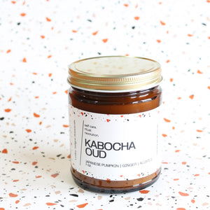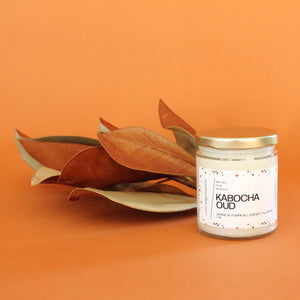 KABOCHA OUD. Japanese Pumpkin. Persimmon. Kumquat. Ginger. Clove. Brown Sugar. Blood Orange. 7 oz. Cotton Wick.