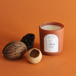 KABOCHA OUD Hand Poured Candle. Blood Orange. Japanese Kabocha Pumpkin. Allspice. Brown Sugar. Wood Wick. 12 oz. Matte Terracotta.