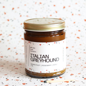 ITALIAN GREYHOUND Hand Poured Candle. Juicy grapefruit. Sugar. Rosemary. Mint. 7 oz. Cotton Wick.